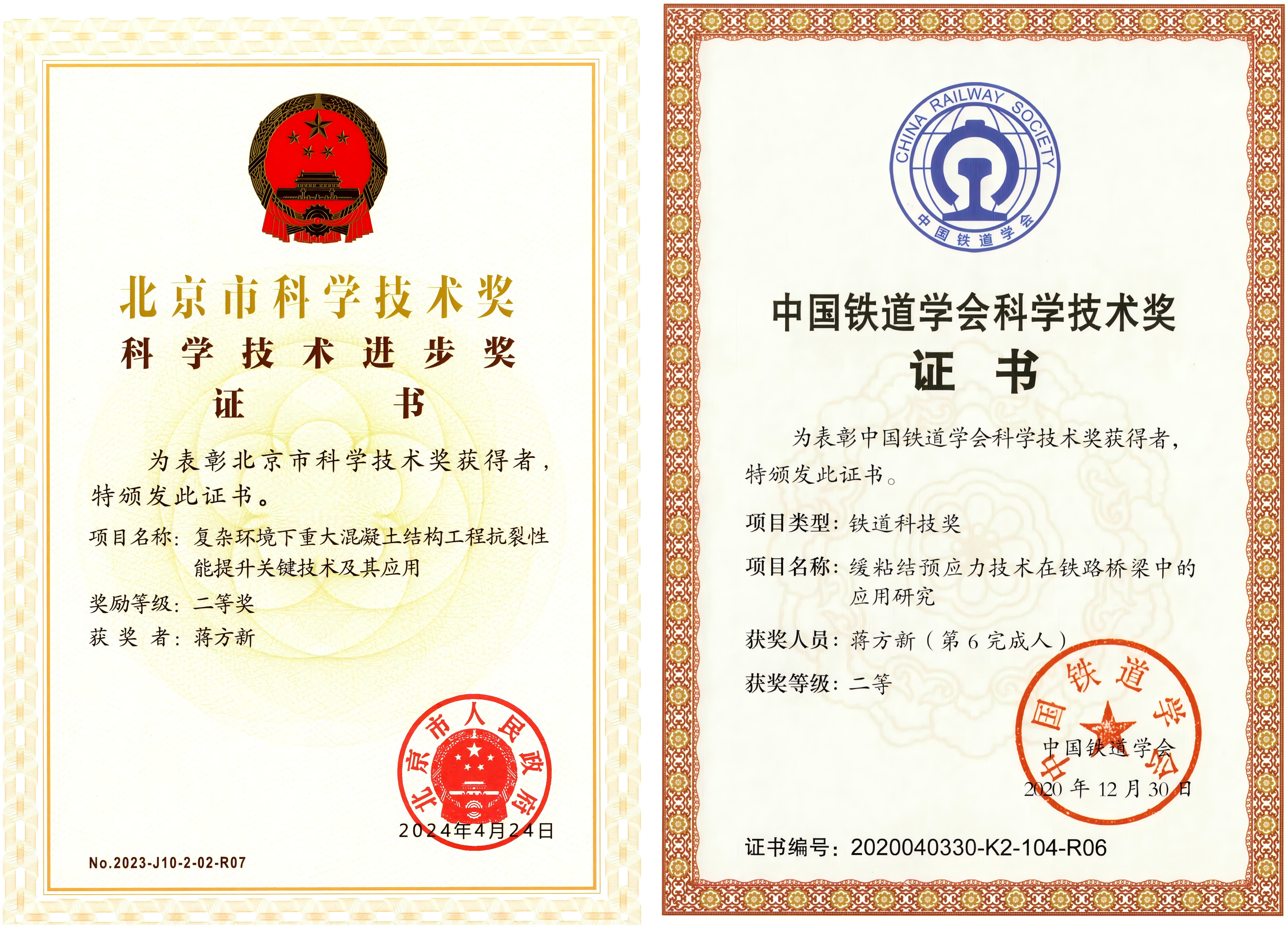 蔣方新帶領團隊成功研發大直徑緩粘結預應力材料、濕氣型緩粘結預應力材料、高粘抗滲緩粘結預應力材料、緩粘結預應力錨桿及超高強預應力材料,并成功開發配套錨具及張拉機具設備等。所研發新型預應力材料形成了完備的技術體系,處于國內領先、國際先進水平,相關產品取得北京市新技術新產品認證。